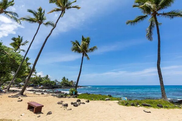 You really can't get a better location. Location, Location, Location! Walk into town in the morning for breakfast, and then at the end of the day, stroll back in for dinner along Ali'i drive. You have amazing access to all the amenities that Kona town has to offer.