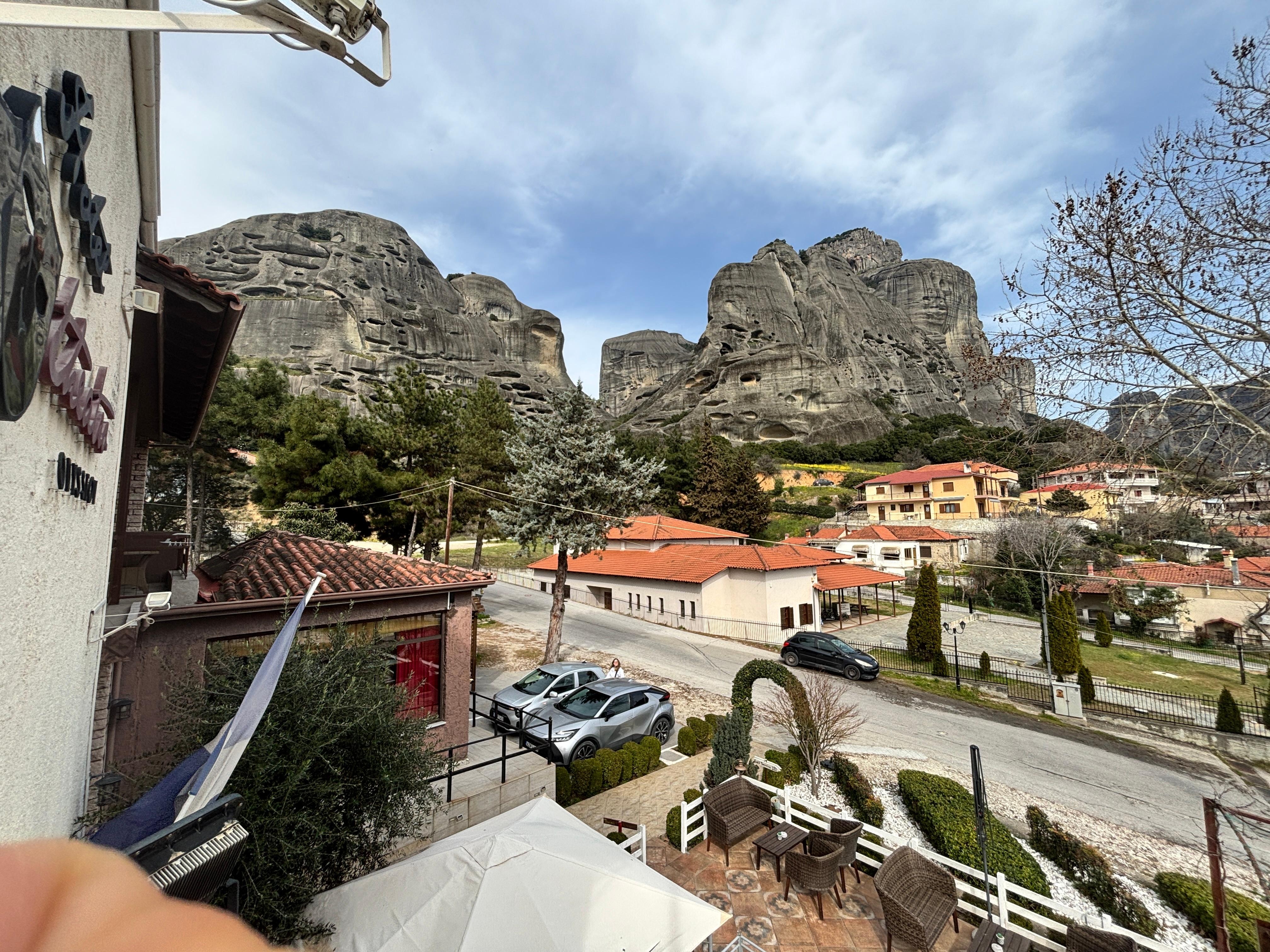 Olimme tutustumassa uskomattomiin Meteoran luostareihin. Hotelli kruunasi matkan. Hotelli oli siisti, aamiainen erittäin hyvä ja todella ystävällinen ja avulias henkilökunta. Meidän huoneesta olivielä panorama-näkymä vuorille. Aivan huikea.