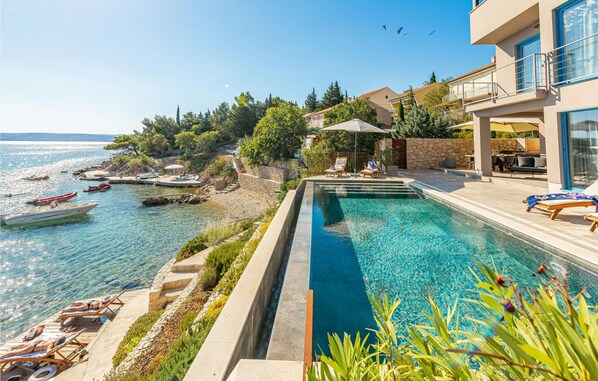 Exceptionally beautiful and luxuriously furnished vacation home with infinity pool, private bathing jetty and much more, situated in a fantastic location directly on the sea.