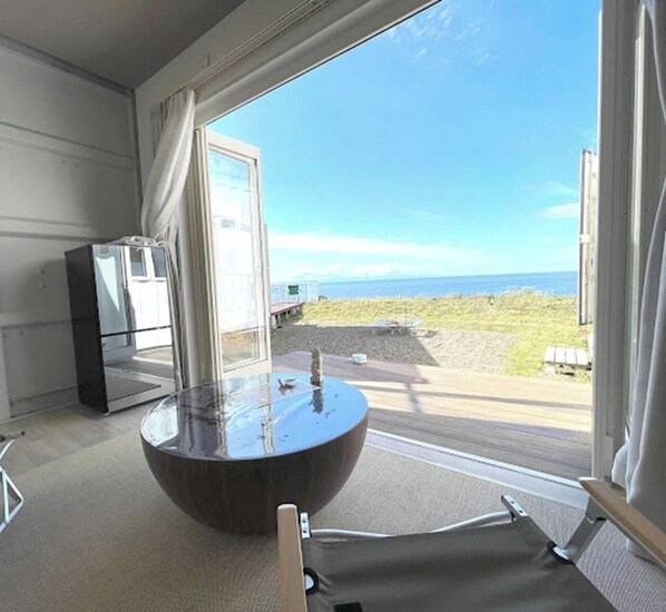 When you open the villa tovila you will be greeted by a breathtaking view of sora and umi This is a special place where you can see the vast sky and the beautiful sea which shows different expressions as time passes and Sado Island in its entirety with a clarity that is hard to believe is the sea of Niigata Enjoy this wonderful and special view the natural beauty woven by the sea and sky during your outdoor stay We hope that your day at sora umi tovila will be a page in your wonderful memories / This plan allows you to stay in a containertype villa a Westernstyle room with a single bed Shower and toilet facilities are provided You can use the kitchen tower for cooking
