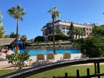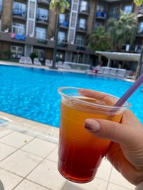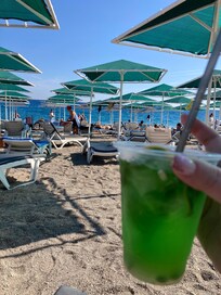 The pool was clean and not too crowded, there was no issue getting a sun lounger on any day we were there, and whilst the beach loungers were busier, we found that going after lunch was quieter and we were able to find what we wanted (Me shade and Him sunshine) the beach is pebbly rather than sandy - and best tackled with shoes - especially on the way out of the sea!