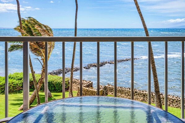 Enjoy the ocean breezes in our 3rd floor ocean front condominium. Or, for those hot/humid days, close up and enjoy the cool air conditioning. This beautiful unit was extensively upgraded in the summer of 2022, including all new furniture, paint, carpet & bathroom! This unit is located in the direct center of the complex and has a full on ocean view. Enjoy the sunset view from the lanai, plus the rooftop for a great place to watch whales in winter!