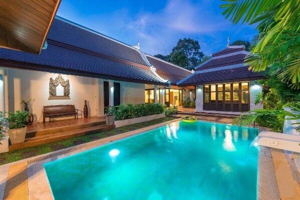 Balinese-inspired 3-bedroom villa with private pool, garden, and 5-min walk to Bang Kao Beach