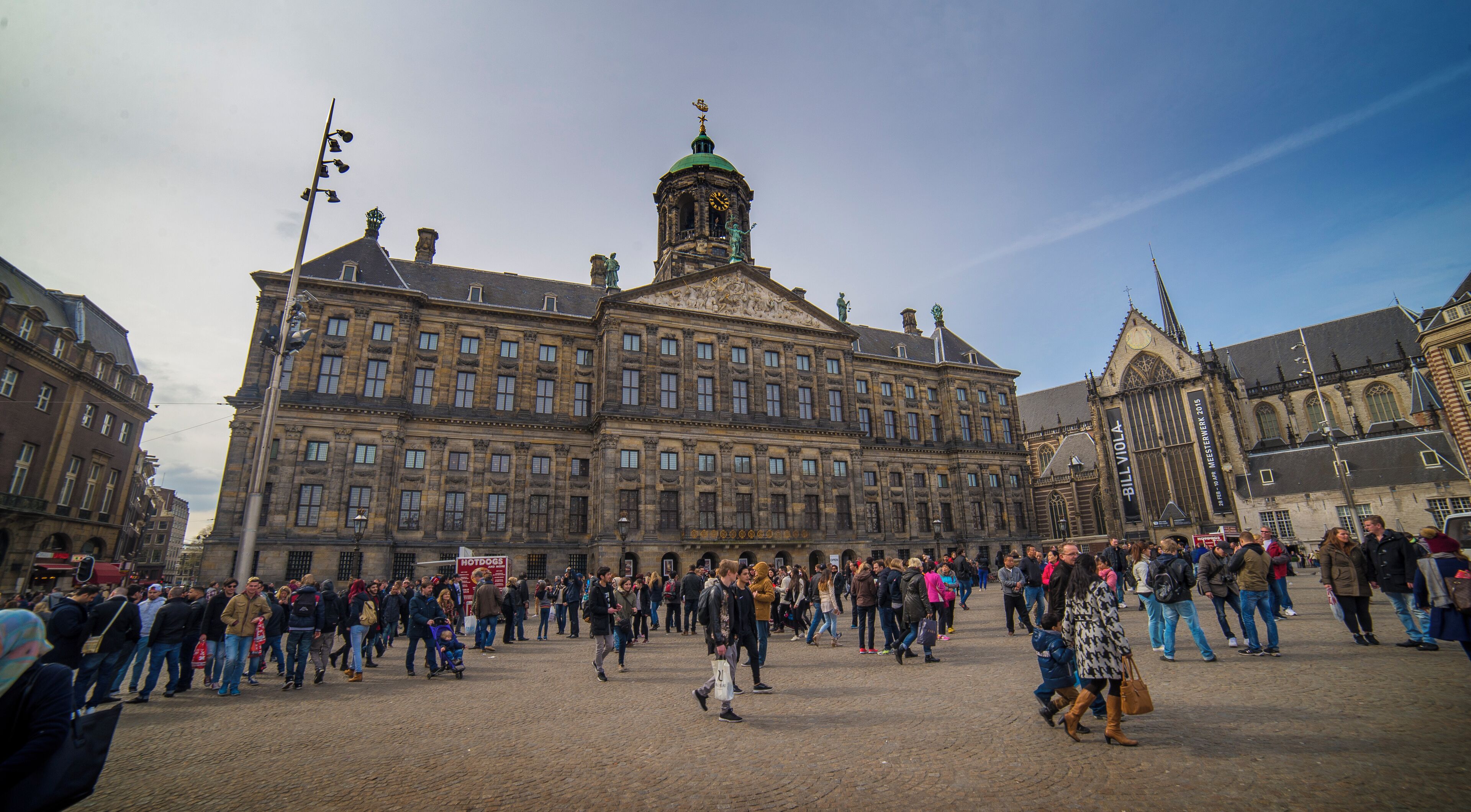 Suurten historiallisten rakennusten ympäröimä Amsterdamin ikoninen mukulakiviaukio on vilkas kokoontumispaikka, jossa järjestetään myös mielenosoituksia ja juhlia.