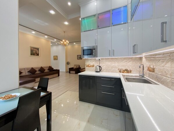 Itsenäisyydenaukio, Khreshchatykin ostoskatu ja Ukrainan kaikkien tienviittojen nollapiste sijaitsevat 5 minuutin kävelymatkan päässä tästä asuinrakennuksesta. Pyhän Mikaelin kultakupolinen luostari ja Vladimir Suuren monumentti ovat myös 10 minuutin kävelymatkan päässä.
