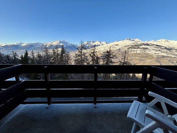 100m from ski slopes, 3rd floor, view mountain, balcony, tv, ski locker, 27m², Montchavin La Plagne