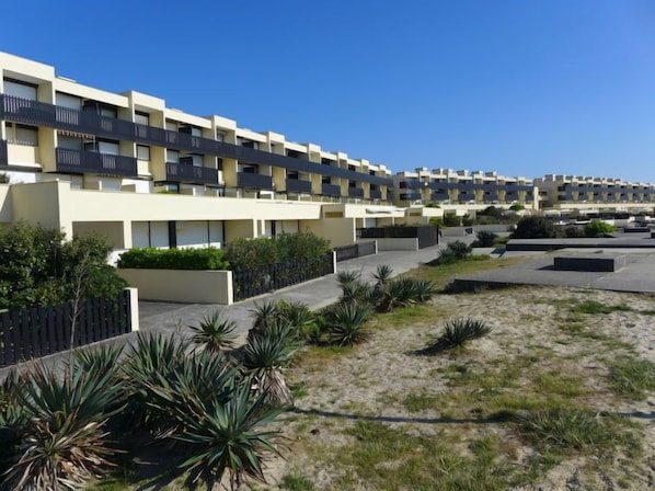 Lacanau-Ocean: Residenssi "Les Océanides", 4 kerroksinen. 300 m keskustasta, 20 m meren rannalta, 6 km järven rannalta, 20 m rannalta, suora yhteys rannalle. Kauppa 300 m, ruokakauppa 50 m, supermarket 300 m, ravintola 50 m, baari 200 m, leipomo 100 m, jalankulkualue 200 m, polkupyörävuokraus 500 m, bussipysäkki "Salle l'Escoure Océan" 700 m, hiekkaranta "Plage sud" 20 m, uimaranta "Moutchic" 6 km. Golfkenttä (18 reikää) 4 km, purjehduskoulu 10 km, tennis 2 km, ratsastustalli 15 km. Lähettyvillä nähtävyyksiä: Bordeaux 60 km, Dune du Pilat 80 km, Arcachon 80 km, Saint Emilion 80 km, Lacanau Ville 10 km. Tunnettu järvi: Lac du moutchic 10 km, Lac de Maubuisson 20 km. Vaellusreittejä Chemin de Saint Jacques de Compostelle 500 m. Huomioitavaa: ei hissiä.