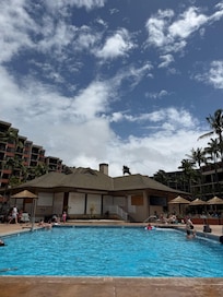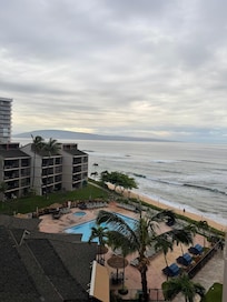 Celebrated our 25th wedding anniversary this week, they gave us a bottle of wine at check in … view was amazing, however the unit wasn’t the best due to the Kona storm. Water got into the unit and soaked the bedroom floor and made it smell like mildew. The front desk was great, they offered to move us to another unit, however we would’ve gone from an ocean view to a parking lot view so decided to put up with the smell and damp floor. Maintenance came in and extracted the water from the carpet and had a dryer to dry out the room for a few days. The smell never went away but we really appreciated them attempting. The property overall was great - restaurants, grocery stores, shops, bakeries ( the famous Papi’s Ohana cinnamon rolls!), and food trucks are within walking distance. Whalers Village is close by - it’s walkable. Two big pools, with beach access. Would recommend!