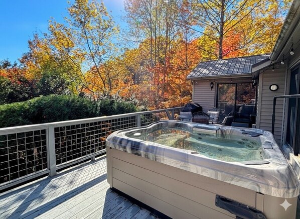 Relax at this 3-Bedroom Oasis With Private Deck And Hot Tub Inside Rumbling Bald
