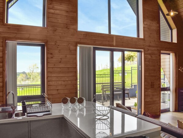 Fabulous countryside lodge with stunning views of rolling hills and friendly farm animals. Enjoy access to an indoor heated pool, sauna, jacuzzi, steam room and gym, the perfect rural escape for families and friends to relax and explore.. (Ramp Access).