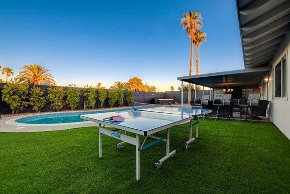 Älä katso enää ... TÄMÄ on kotisi, jota olet etsinyt! Tämä 4 makuuhuoneen hotelli sijaitsee vain muutaman minuutin päässä Stripistä ja keskustasta. Vieraiden mukavuutta ajatellen sisustettuasi voit nauttia vierailustasi! Jokainen makuuhuone on ylellisesti sisustettu ja sisustettu. Nauti mukautetusta biljardipöydästä, pokeri- ja rulettipöydästä pelihuoneessa tai aseta panokset korkealle kasinopelissä. Takapihalla on täydellinen paikka pelata myös yksityisellä uima-altaalla, kylpylällä ja viheriöllä!Rentoudu ja virkistäydy viihtyisillä vuoteillamme, seinällä varustetuilla taulu-tv: llä ja runsaalla pehmeällä tyynyllä jokaisessa makuuhuoneestamme. Oleskelualueen upea avoin ulkoasu on helppo käyttä�� yhdessä. Voit valita laajan valikoiman lautapelejä, pelata biljardipelejä pelihuoneessa tai pelata joitakin kortteja kasinopelissä! Keittiössä on kattilat, kattilat, astiat, hopeaesineet, valikoituja koruja ja paljon muuta! Katettu terassi sopii erinomaisesti ulkona ruokailuun tai grillien sisäänrakennettuun grillipaikkaan. Tämä koti oli sisustettu vieraiden tarpeiden, mukavuuksien ja mielessä! Nauti tästä yhdenlaisesta kaupungista, tässä ainutlaatuisessa kodissa!