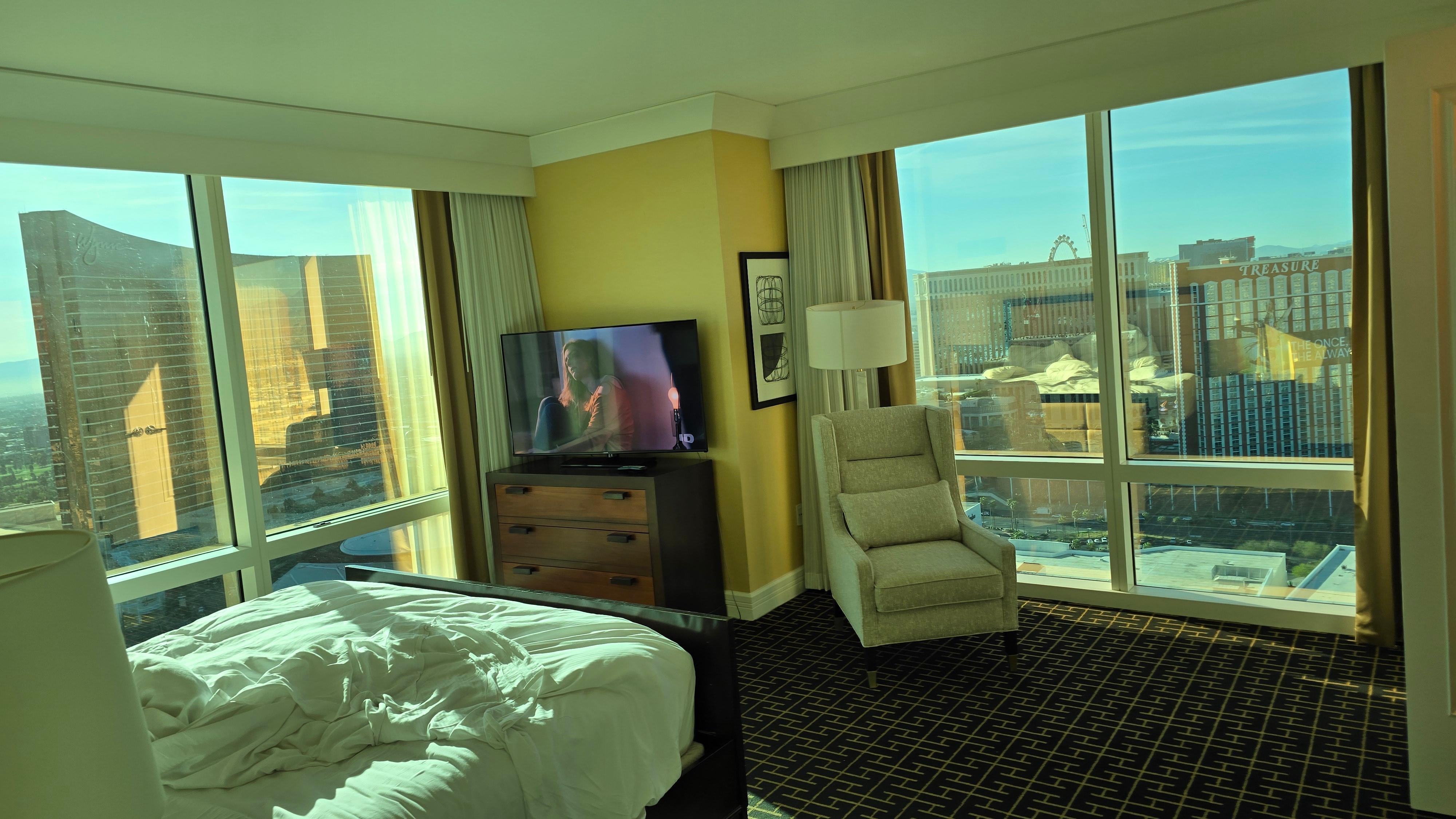 Yövyttiin 2 yötä Deluxe-huoneessa 52. kerroksessa. Hotelli oli todella hieno ja palvelu ensiluokkaista. Huone oli ok, näkymät stripille olivat ihan huikeat, mutta itse huone ei ollut 5 tähden arvoinen. Kalusteet olivat kuluneita, huone ei tarjonnut erityisesti mitään ekstraa ja sänky olisi voinut olla mukavampi. Poreallas ei toiminut. Sijainti oli ihan hyvä, jos ei pelkää pientä kävelyä. Hotellin ympäristö oli vähän epäilyttävää aluetta. Vastapäätä olevan kauppakeskuksen kautta pääsee kätevästi ja turvallisesti kulkemaan sen aukioloaikana.
