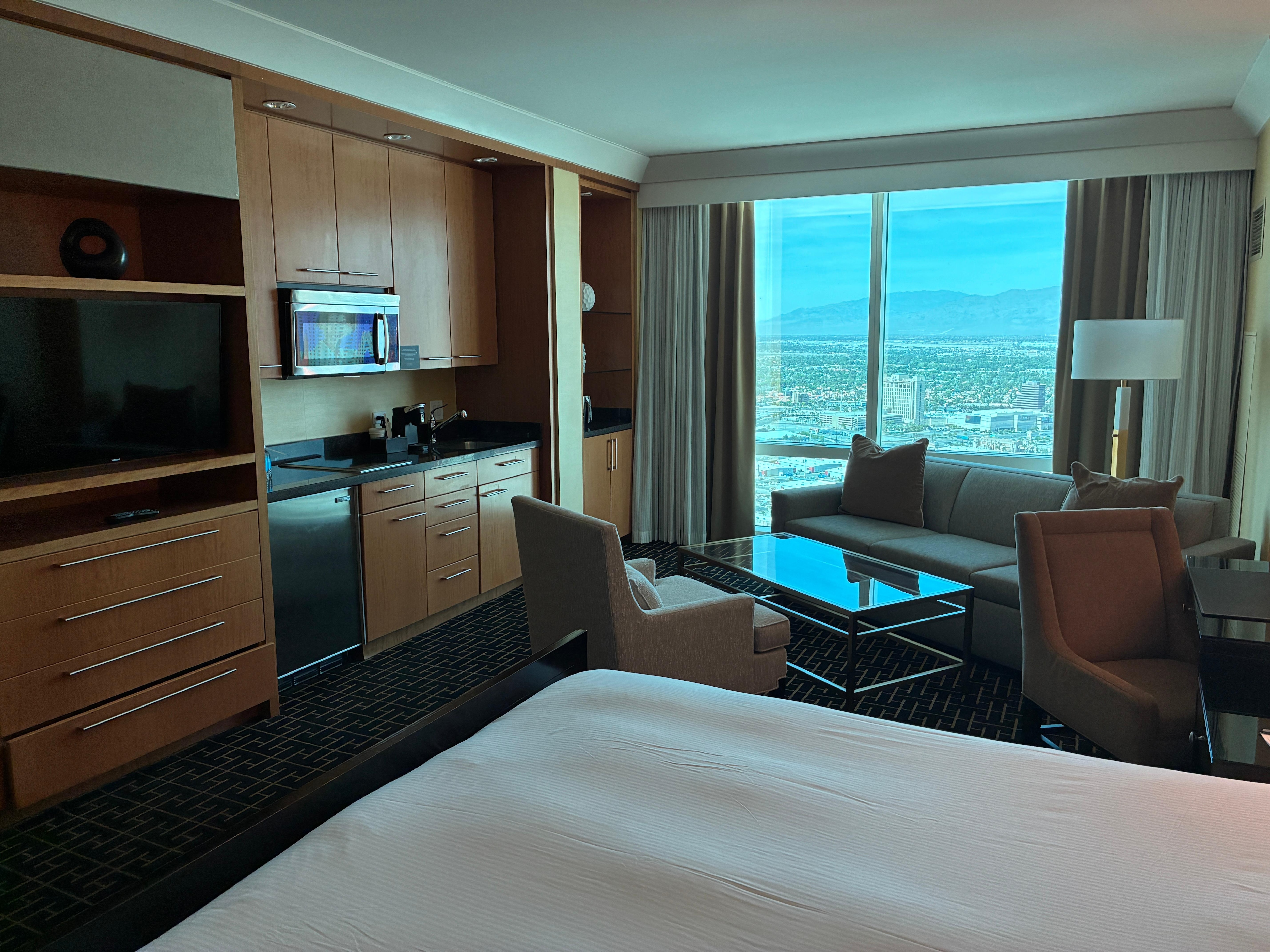 Everything was flawless. The staff were friendly and very helpful. Room was immaculate with a wonderful view. Everything was perfect down to the toiletries. We loved being away from the crowds you see in the strip and really appreciated no casino on site.