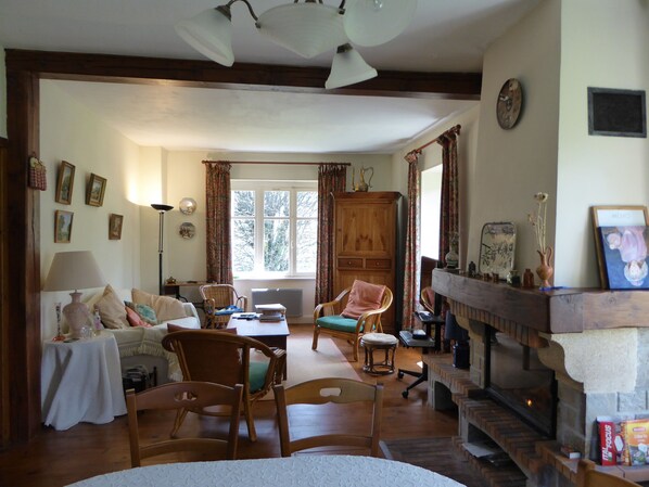 Erittäin valoisaan ja aurinkoiseen majoitukseen kuuluu iso olohuone - ruokailuhuone, 32 m2, TV, DVD-soitin, lautapelejä ja turistidokumentaatio