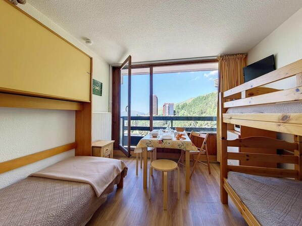 100m from ski slopes, 5th floor, view valley, balcony, tv, ski locker, 17m², Les Menuires – arvostelut