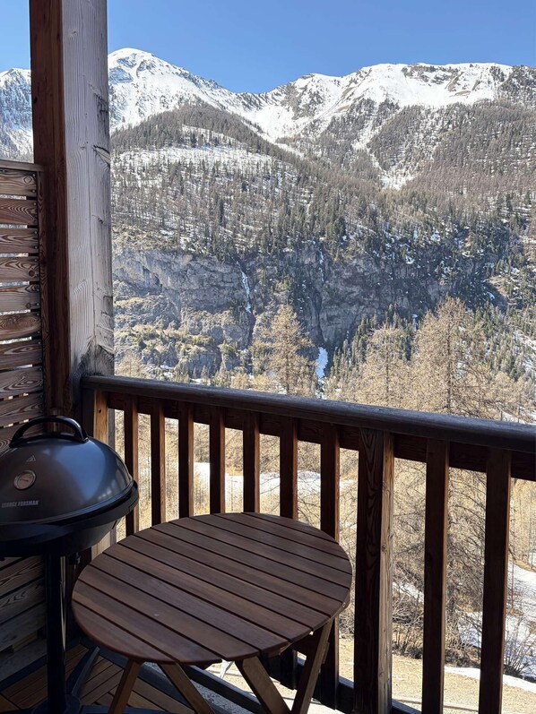 Les plus : pas de vis à vis et vue très agréable depuis le balcon (aménagé avec tables et chaises pour des repas), calme du bâtiment et bonne situation dans la station pour les randonnées.