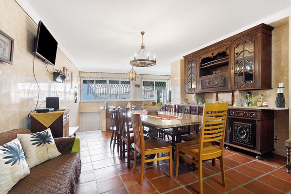 Casa Campo e Mar welcomes you to Encarnação, offering a spacious 200 sqm villa perfect for up to 11 guests. You will find 1 living room and 3 bedrooms with 1 bathroom to accommodate your group. The fully-equipped kitchen provides everything needed for meal preparation, while amenities include high-speed WiFi for video calls, television, video on demand, washing machine, fan, and dedicated workspace. Additional conveniences feature step-free access, step-free interior, 3 bicycles, and 1 baby bed available for families with young children.
