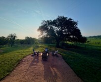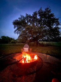 The true gem, though, is the backyard centered around a massive oak tree. It feels like your own private bird and wildflower sanctuary. Sitting outside by the fire at night was unforgettable—we heard coyotes in the distance and even a bobcat under the stars. It was truly magical.