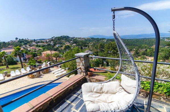 La Cancha stands elegantly on street level, with the entrance accessible via stairs to the first floor. This spacious villa boasts a private swimming pool and offers a panoramic view of the lush green mountains, creating an idyllic backdrop for your stay. The villa's interior is designed in a Spanish yet practical style, featuring a light and authentic atmosphere that complements its surroundings. Enjoy exclusive access to a tennis court and a permanent stone BBQ with cooking utensils. The villa is perfect for families, featuring a playground for young children and ample personal space. Spread across a built surface of 300 m2 on a 2000 m2 plot, La Cancha offers a natural garden for relaxation.Accommodation Details
