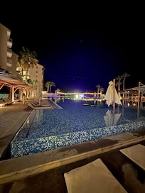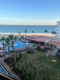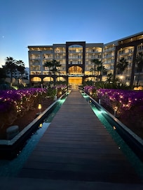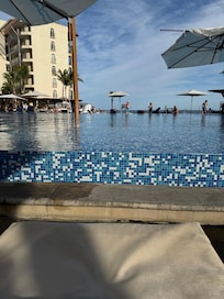 My adult daughter and I spent 8 nights at the Krystal Grand in San Jose del Cabo in January. We originally booked an Ocean View Junior Suite but upgraded to an Altitude Ocean Front before arrival. Because of that, I never saw what an Ocean View room looked like, but we were very happy to be in the Altitude tower Ocean Front. Our room was on the 7th floor which was very convenient to access the Sky Lounge on the roof top, just one floor up. There is one elevator for the building which is noisy and a little unsettling but it always got the job done. As an Altitude guest, we did get some extra perks which definitely made the vacation better. The benefits included: access to the Sky Lounge (open 3-10 pm on the roof top; it was never busy)...access to a special palapa with it's own bar, snacks, coffee and cold drinks...access to a la carte restaurants for breakfast and lunch...a concierge to make reservations for dinner. Because of the a la carte options, we only ate at the buffet once. Food was acceptable; nothing fancy. The breakfasts were always hot and fresh and the lunch options included yummy burgers, chicken fingers, fries, etc. Our only bad experience with food was in Ayami, the Asian restaurant. The teppanyaki food was excellent but the regular table service food was mushy and soggy. We spent no time at all in the regular pool area, instead hanging at the adult-only pool. It was generally quiet, as advertised. Overall a good vacation!