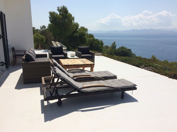 Villa, jota ympäröi 17000 neliömetrin puutarha, tarjoaa täyden yksityisyyden, koska se sijaitsee harvaan asutulla alueella lähellä Vouliagmeni-järveä ja Heraionin temppelin muinaista sivustoa.