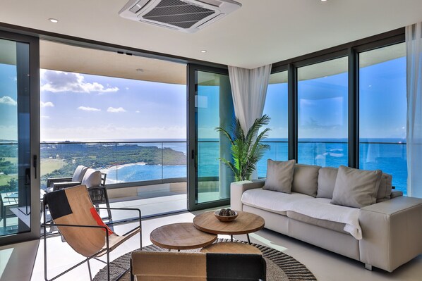 The open-concept living area provides the perfect space for relaxation and entertainment. The tastefully furnished living room features comfortable seating arrangements, allowing you to unwind and enjoy the mesmerizing beach view that stretches before you. Whether you're lounging with a book, socializing with friends and family, or simply savoring the serenity of the coastal scenery, this living area offers the perfect setting.