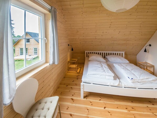 Talo ulottuu puolitoista kerrosta. Se tarjoaa sinulle noin 65 neliömetriä asuintilaa. Talo mahtuu 6 henkilöä, viidestä. Henkilölle voidaan tarjota lisävuode (lisämaksu). Kaksi erillistä makuuhuonetta (yksi lisävuode per makuuhuone mahdollista) sijaitsevat yläkerrassa. Sinulle pääsee normaalin portaikon kautta. Pohjakerroksen tilava olohuone on varustettu puulämmitteellä, yölämmitys ja ruokapöytä, jossa 4 tuolia. Kylpyhuoneessa on suihku / WC ja pesuallas. Pieni keittokomero on varustettu kattiloilla, astiat, ruokailuvälineet, lasit, vedenkeitin, kahvinkeitin, leivänpaahdin, 2 keraamista liesi ja jääkaappipakastin. Ei uunia eikä astianpesukonetta. Oheisessa ravintolassa on mahdollista nauttia aamiainen (tilauksesta) tai k��ydä illalla. Terassi osoittaa etelään. Siellä on Wi-Fi ja TV.