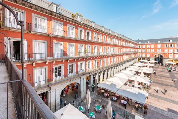 Plaza Mayor II is a suite with a perfect location. It is a unique house of the 17th century, which preserves all the essence of the time and integrates the set of buildings that make up the Plaza Mayor of Madrid, forming part of the buildings with monumental category.