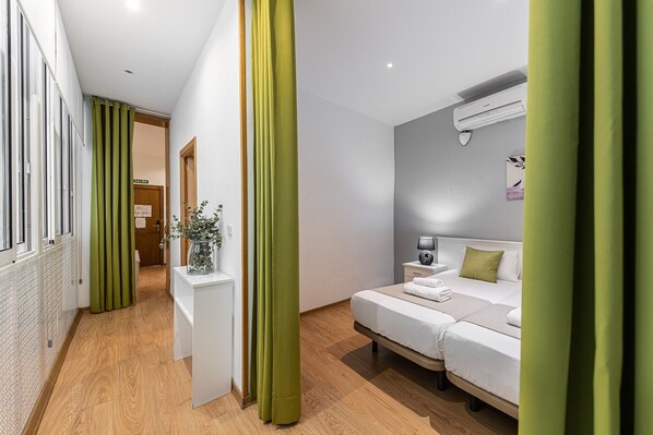 The apartment consists of a living room with an open-plan kitchen that has all the necessary equipment to make the most of your stay, a bedroom with two single beds and a bathroom. Capacity for four people.
