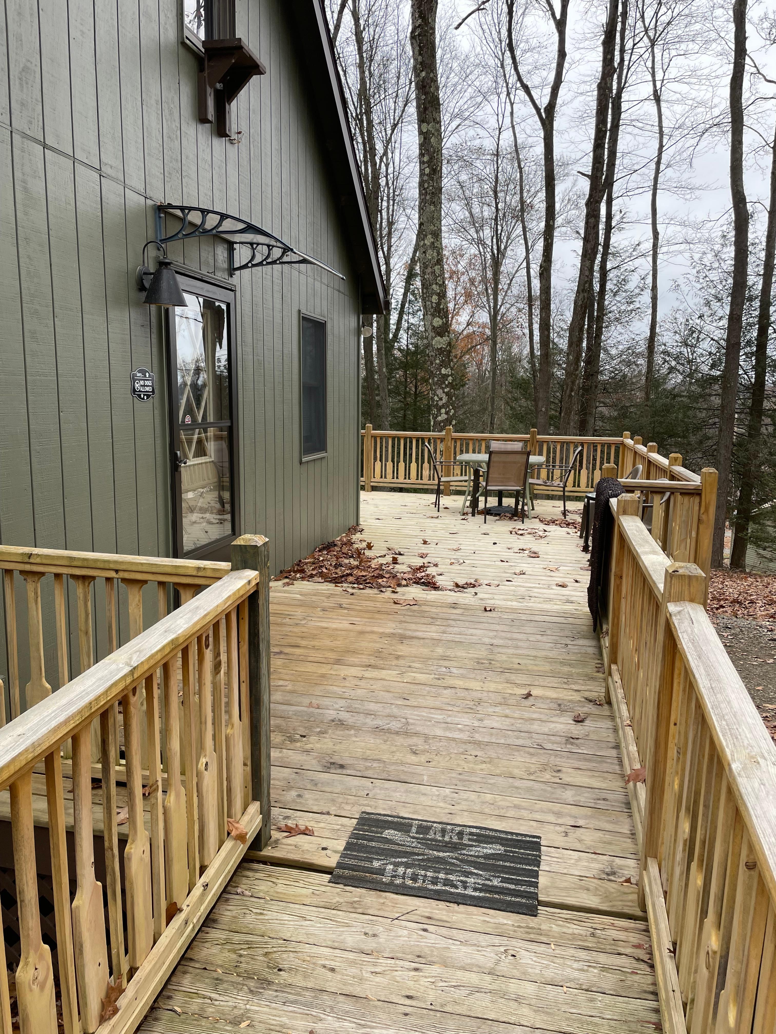 Ramp to Side Door (36" Door) to accommodate wheel chair accessibility. Note that the cabin is not ADA compliant. Please reach out to cabin owner with any questions on handicap accessibility.