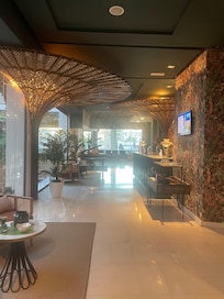 Luksusluokan hotelli, jonka tarjontaan kuuluu kuntokeskus ja kattoterassi