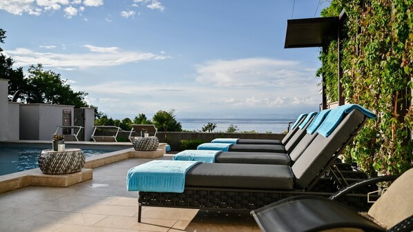 Korvaava, mutta minimalistinen; ylellinen mutta tarttuva, mutta jokainen huvila muodostaa erillisen, yksityisen yksikön. Jokaisessa huvilassa on 4 makuuhuonetta, joissa kaikissa on erillinen kylpyhuone. Keittiö, jossa on katettu baari-terassi, ruokailutila ja olohuone, jossa on lounge-terassi ja pääsy suolaisen veden altaalle. Viereisessä puutarhassa on kaunis puutarha, jossa on runsaasti Välimeren kasvillisuutta ja oliivipuita.