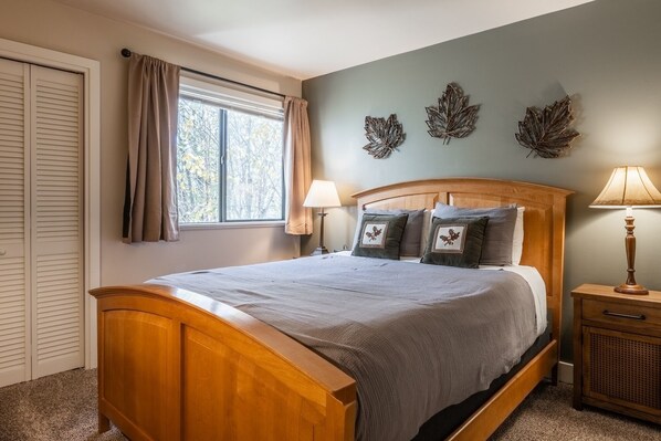 Comfort awaits inside this inviting 2-level retreat, which greets guests with a convenient entry for slipping off outerwear. Turn into the living room, where a plush sectional and stylish wooden armchair invite relaxed evenings in front of the Smart TV. When the weather’s cold, take advantage of the fireplace. Warmer nights beckon guests out the sliding glass doors to sip drinks or grill on the balcony.