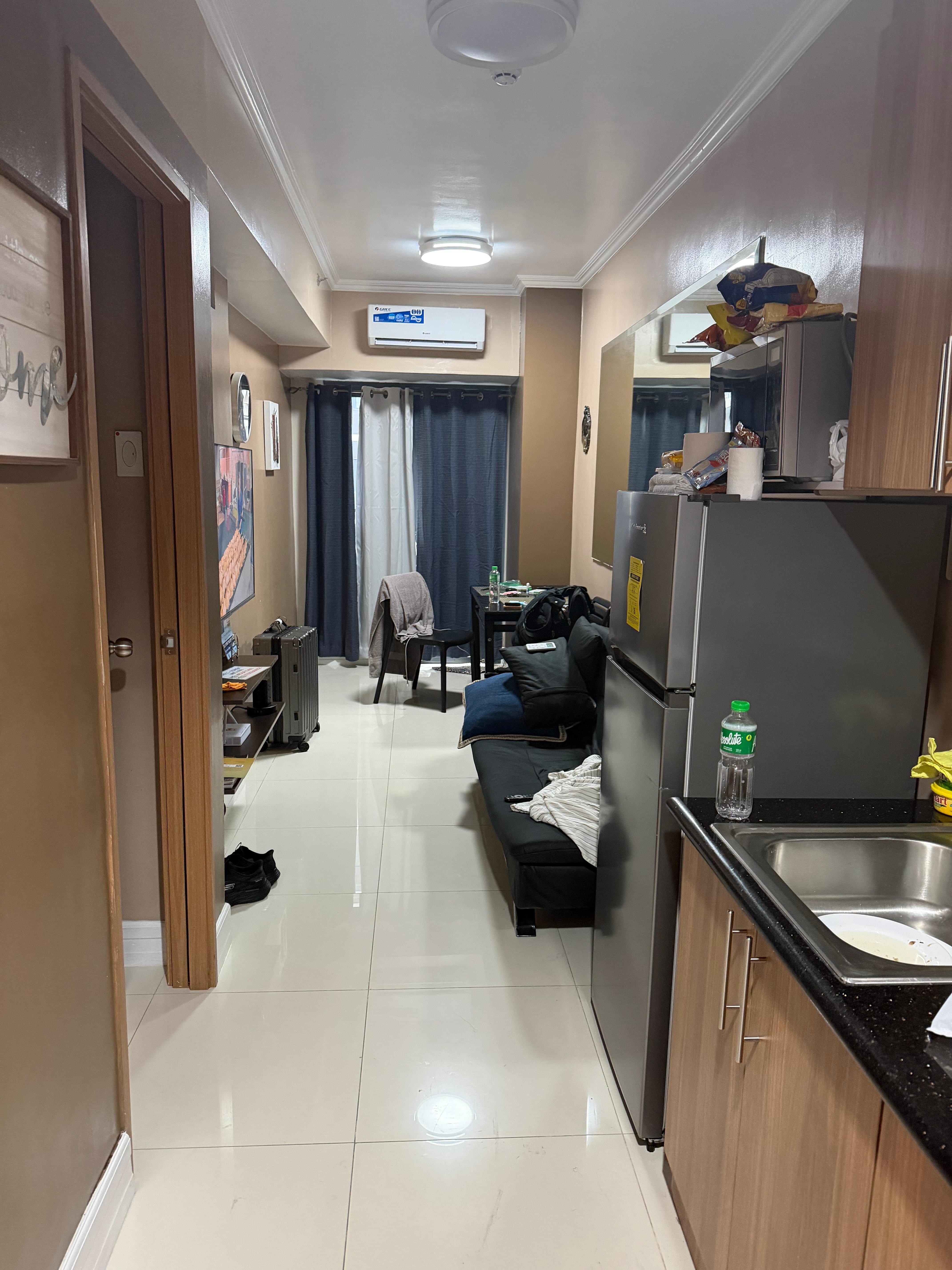 === *Unit Features: 1) All utility bills included. 2) High-speed cable and internet access. 3) 1 queen-size bed, and 1 sofa bed. 4) Towels, toiletries 5) Complete kitchenware and utensils. 6) Washer for guests staying 5 nights or more. == *GREAT NEWS! We now have a new 3-star hotel in the heart of Puerto Princesa City, Palawan, just 5 minutes from the airport. Please inquire for availability. == GUEST ACCESS Available amenities include swimming pools, kiddie pools, a children's playground, an outdoor fitness area, basketball and tennis courts, and an outdoor lounge.