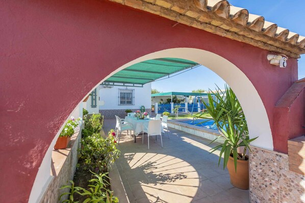 Perheystävällinen loma-asunto, jonka tarjontaan kuuluu ulkouima-allas