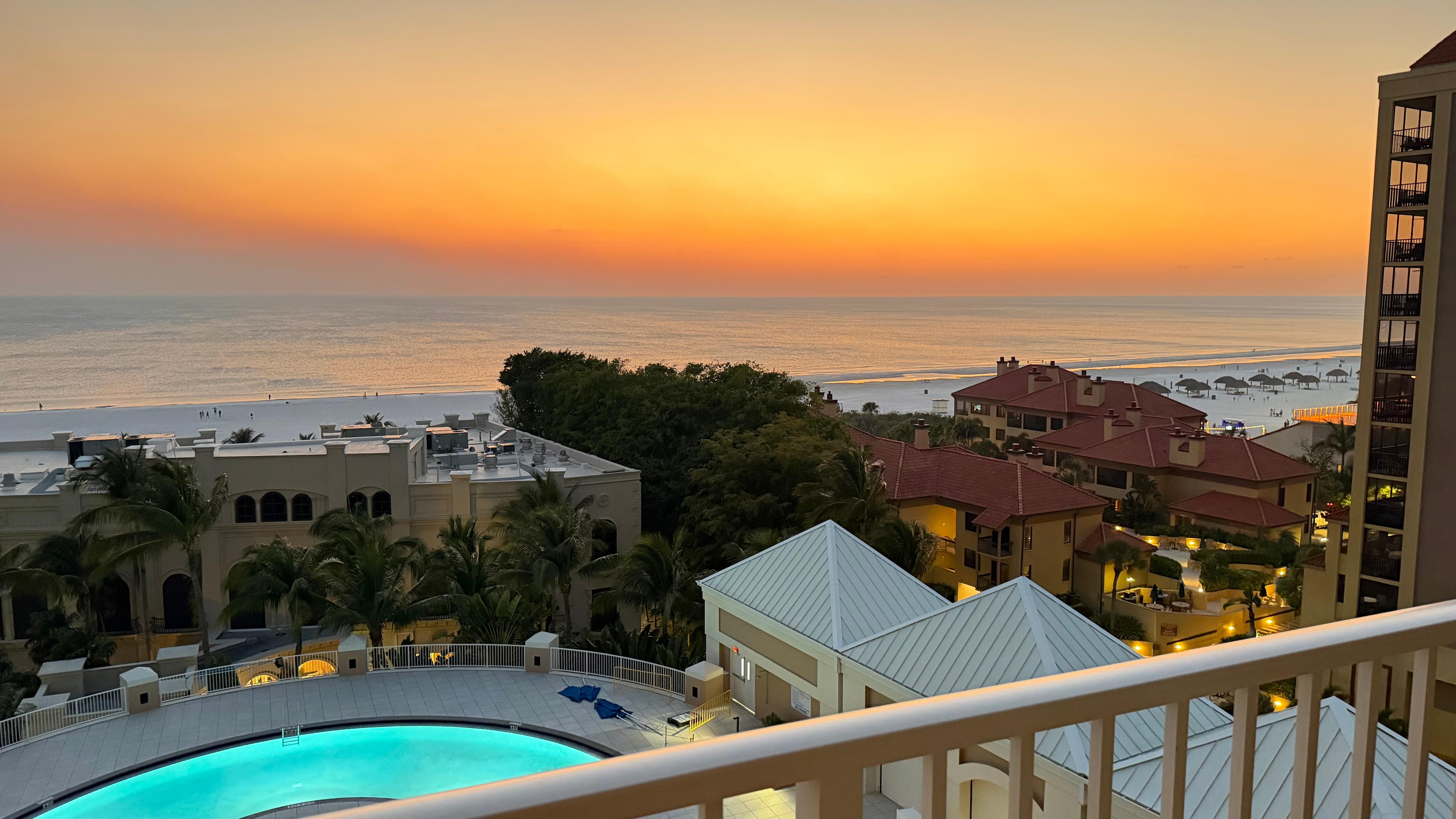 Staff is polite, the property is clean, the valets are excellent, the extra amenities in the room are wonderful. Especially the beach towels, beach, chairs, and beach umbrella. Beach umbrella are very easy to put into the sand since they come with their own manual auger. Just a wonderful experience. The property location is very central in Marco. Grocery stores, Walgreens, restaurants are all within a 10 minute drive. I really can’t think of ever wanting to stay at a different location. Should I return to Marco Island?