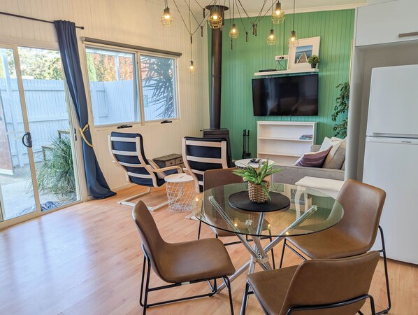 At MP Beach Club (250m to beach), 'pet-friendly' is an understatement. We welcome your furry family members without question, as we believe holidays are for the entire family, paws and all. Your pets are welcome both inside the cottage and out. Each unit boasts a large, private, and fully-fenced yard with a pergola—a safe and spacious area for them to play and relax. To make them feel right at home, we provide pet blankets, bowls, and toys. As a unique touch, some of our single-bedroom units also feature a luxurious outdoor bathtub, perfect for rinsing off a sandy pup after a fun day at the beach! Inside, every cottage is equipped with modern amenities for your comfort. You'll find a fully equipped kitchen , split-system air conditioning and heating , ceiling fans , and a cozy indoor fireplace (BYO firewood is welcome). For your entertainment, we provide a smart TV, a DVD player, and free Wifi. All linens and towels are supplied, so all you need to do is arrive and unwind. All of this is located just a 250-meter flat walk to the beach and is central to the Mornington Peninsula's most popular attractions.