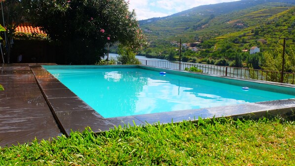 Joen rannalla oleva huvila, jossa on yksityinen uima-allas ja keittiö