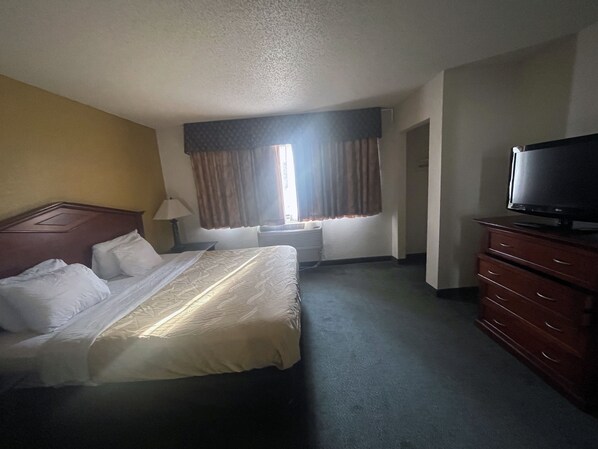 The room was clean and surprising large. The bed was comfortable and 2 tv w separate sitting area. Lots of parking,delicious Mediterranean restaurant next door. The toilet would not flush when we check in at 6pm and the front desk told us they would fix it in the morning. Also hairdryer didnt work. But really reasonable price and we are used to roughing it camping so it wasnt too bad