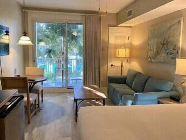 Tämä viehättävä studio sijaitsee Pilot-talon 4. kerroksessa. Siinä on queen-size-vuode, oleskelualue, jossa vuodesohva, pöytä kahdelle ja minikeittiö. Kylpyhuoneessa on suihku / amme-yhdistelmä. Tässä studiossa on parveke kahdelle, josta on näköala kylän uima-altaan alueelle.