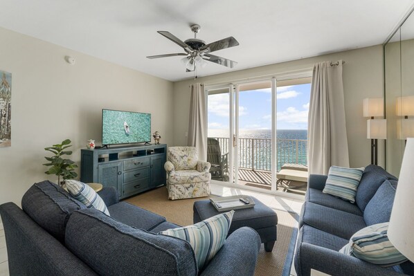 Let our fully renovated and professionally decorated two bedroom, two bath condo be your best vacation ever to make your greatest memories! Escape to the beautiful emerald coast as you enjoy scenic sunrises and sunsets from your private balcony overlooking the idyllic emerald water and white sand beaches. With over 2000 feet of white sand beach frontage, there is plenty of room for beach chairs, sand castles, and playing in the sand and surf. Condo comes with in unit washer and dryer, wifi access, and cable TV.