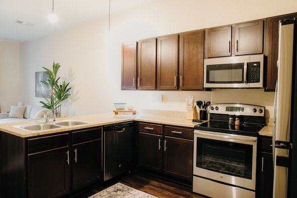 Upon arrival, you'll be greeted by a stylish lobby that sets the tone for your stay. After parking your vehicle securely in the rear parking lot, take a ride up the elevator to your private haven. With the convenience of a smartlock code, you'll swiftly enter your apartment, setting the stage for a seamless and enjoyable experience.