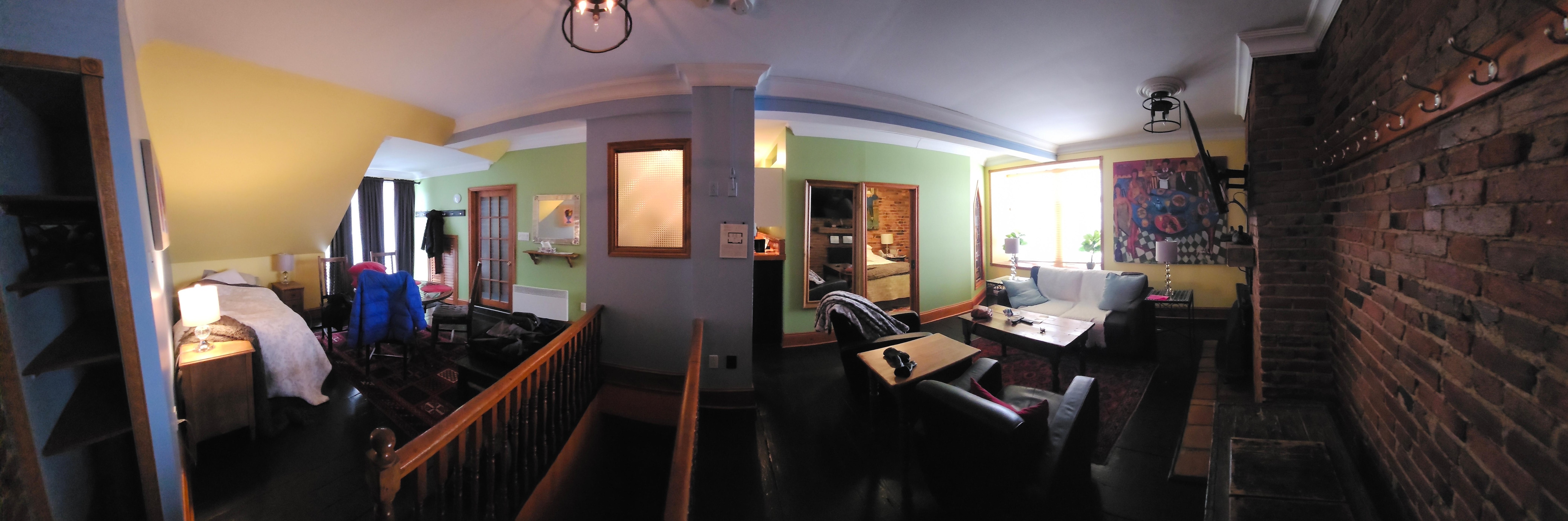 We loved this quirky property. Lots of room with a kitchen and nice area for lounging amd tv watching. We were in town for a Habs game and found across the street at the metro station was a tunnel link to the Bell centre!