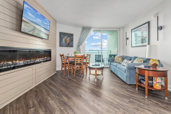 Luxury Oceanview KING Suite at a family‑friendly waterpark resort. Enjoy stunning views, pools, and the convenience of an in‑unit washer/dryer — steps from the beach.