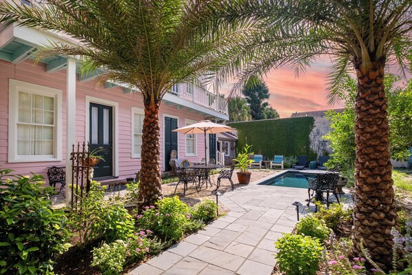 Guests have full access to the B&B common areas, including a fully-equipped gourmet kitchen/dining area; grand front parlor with TV, games and a Nola-themed library; the stunning pool courtyard with mutiple options for lounging or dining; and a washer/dryer off the courtyard should you need to dry pool towels or do any personal laundry (Note: for stays over one week, our professional housekeeper is available upon request).