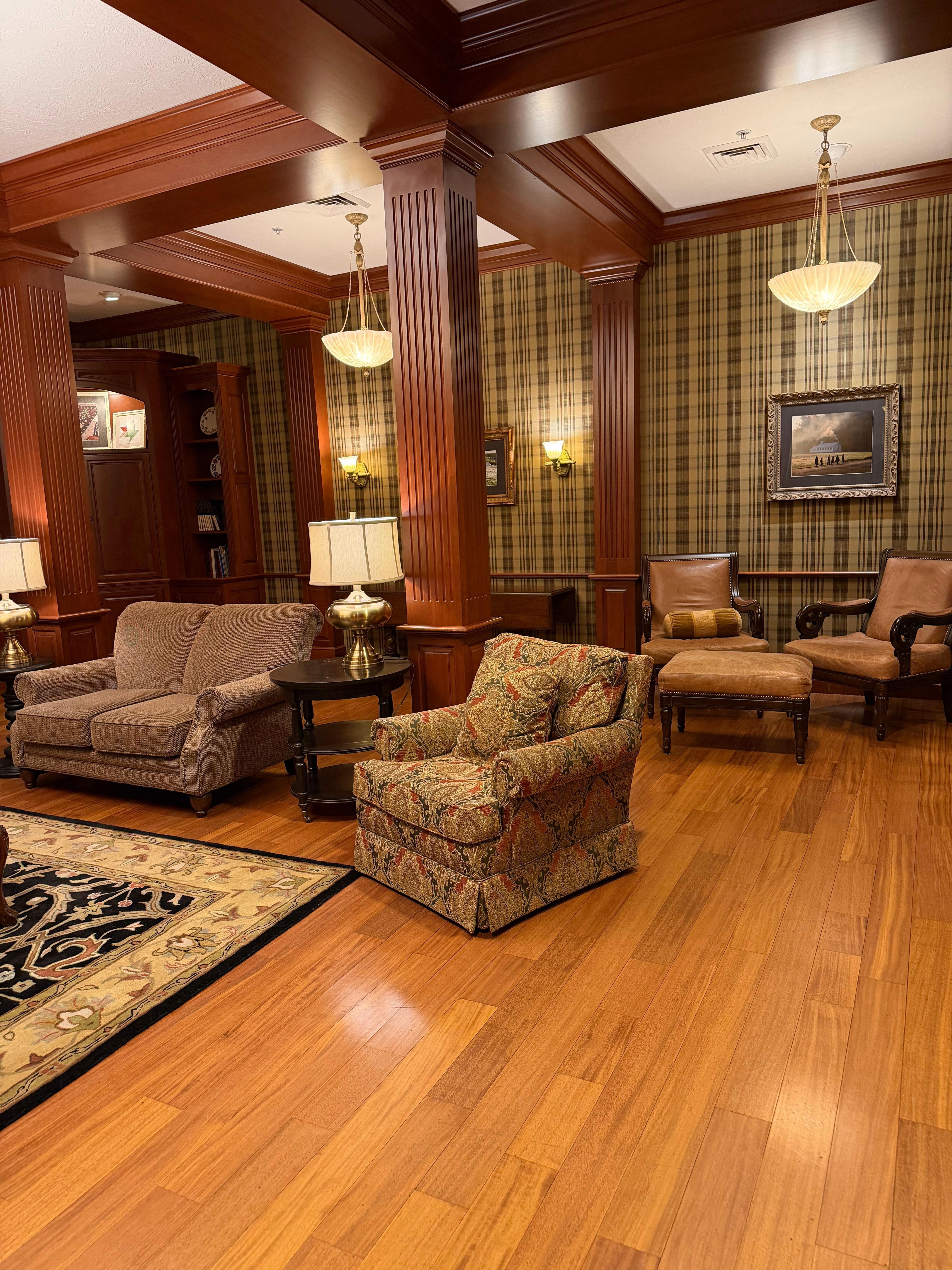 Our room was spacious and, most importantly, very clean. Even my husband, who rarely comments on such things, thought this was the nicest hotel we had ever stayed in. We enjoyed the evening snacks in the large dining area and the comfortable seats by the fireplace in the sitting room. We plan to return later this year.