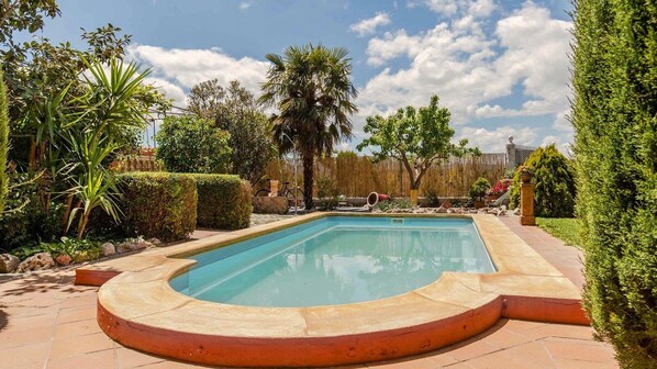 Huvila, jossa on yksityinen uima-allas ja keittiö