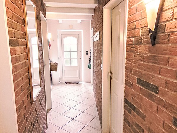 "Klaffmuschel", 3-huoneen rivitalo, 50 m2, sisääntulokerroksessa. Kauniisti ja hyvällä maulla sisustettu: olo/ruokailuhuone, 18 m2, satelliitti TV (litteänäyttö), CD ja DVD. Uloskäynti terassille. 1 huone 8 m2, 1 parisänky (2 x 90 cm, pituus 200 cm). 1 huone 7 m2, 2 vuodetta (90 cm, pituus 200 cm). Keittiönurkkaus (uuni, astianpesukone, 4 keraaminen keittotaso, leivänpaahdin, vedenkeitin, kahvinkeitin, Kapselit kahvinkeittimeen (Nespresso Vertuo) lisämaksusta). Suihku/WC. Terassi 8 m2. Terassikalusteita. Käytettävissä: syöttötuoli (lisämaksu). Internet ( Langaton LAN [WLAN] , ilmainen). Huomioitavaa: savuton talo. Savuhälytin.