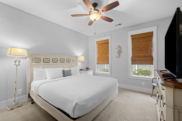 This luxury four-bedroom home offers a fully equipped kitchen, a washer/dryer, and a beautifully decorated back patio. This house is located in the desirable Banyan neighborhood. The sleeping arrangements include three king beds, two queen beds, and a sleeper sofa. It can accommodate up to 12 guests.