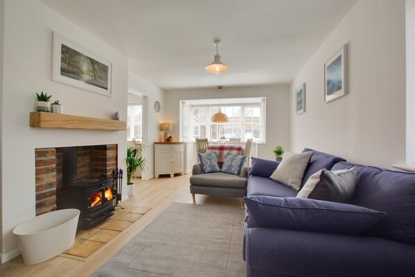 Pet-friendly and full of contemporary coastal charm, this two-bedroom bungalow is located in a quiet cul-de-sac less than 400 metres from the beach. The gorgeous garden, sunny conservatory and multi-fuel stove make it a perfect retreat for any time of year. It’s a great base for a family with older children, or a small group of friends.